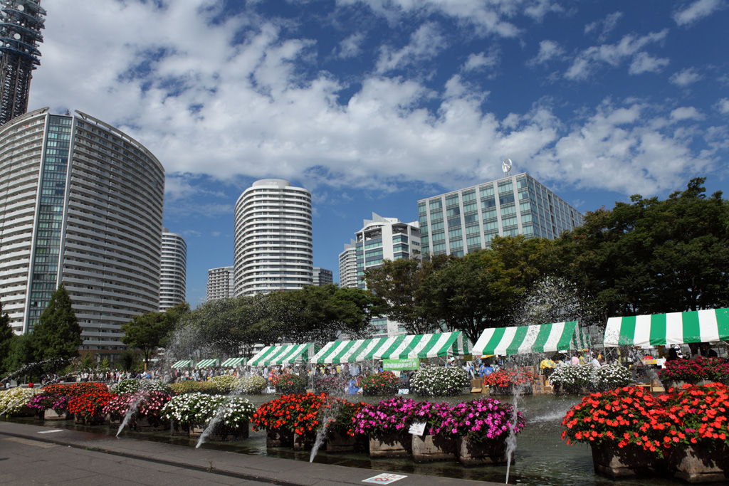 青空、花畑、噴水とのどかな感じが横浜ぽくていいのでは?