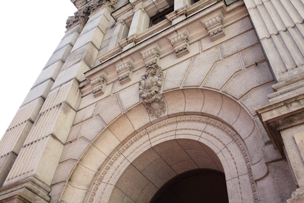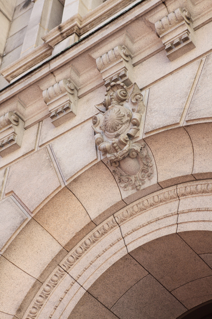 構造・規模 - 石・煉瓦造、地上3階、地下1階、正面中央八角塔屋付、ドライエリヤ石塀附属