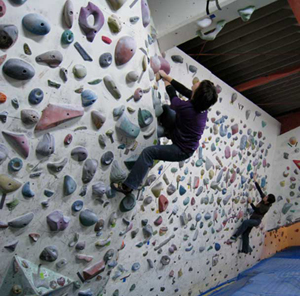 クライミングジムのような高さの低い人工壁や岩場を登る