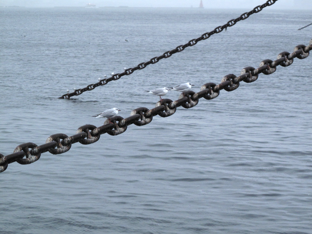 ナイスなかんじではありませんか?日の丸構図ではありますが、氷川丸を休めるためにある鎖に、鳥が羽根を休める図。