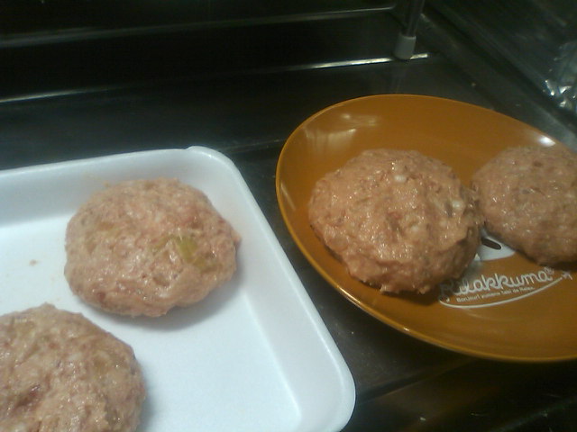 <材料:ひき肉・豆腐・玉ねぎ・塩コショウ・ごま油>