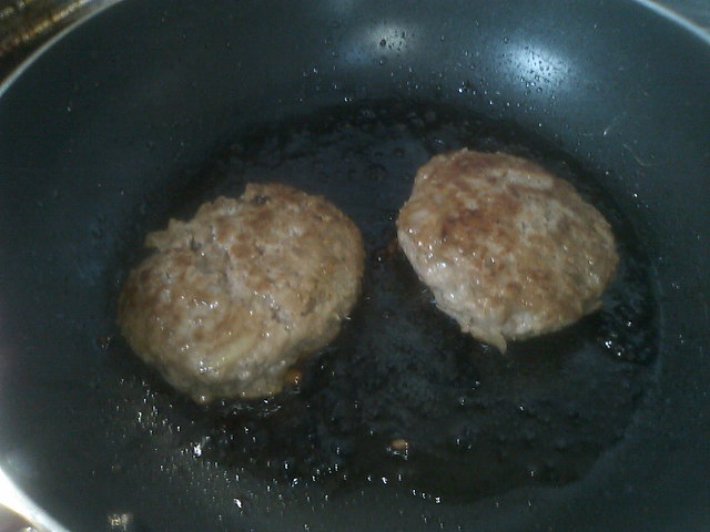 右側のハンバーグは焼き肉のタレ入りで