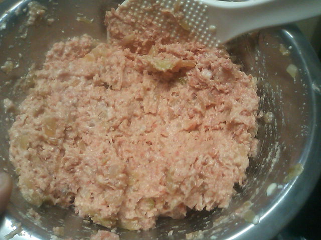 材料を合わせてこねます。塩コショウ・ごま油