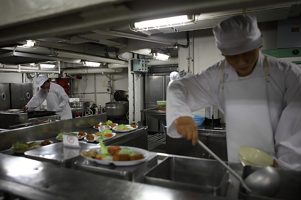 船に乗り込んだら、料理人が料理をしています。あれこの船はレストランか?