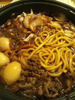 材料:白菜・玉ねぎ・たまご・牛肉・うどん・厚揚げ・