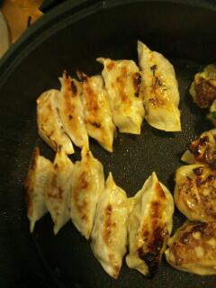 | 4 両面焼いたら、少し水を入れて 蓋をして蒸しまぁ〜す♪♪ |