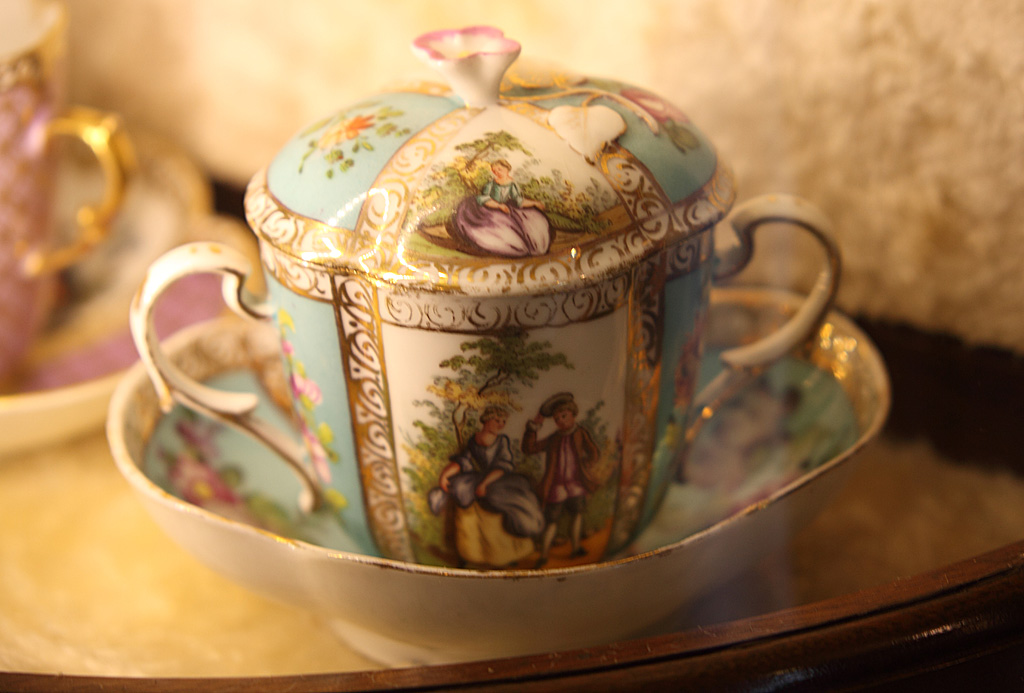 きっと社長の趣味だと思いますが、いたるところにカップやソーサーがあります。もっとも甘い白い恋人のお菓子と茶器は切り離せないのかもしれません。