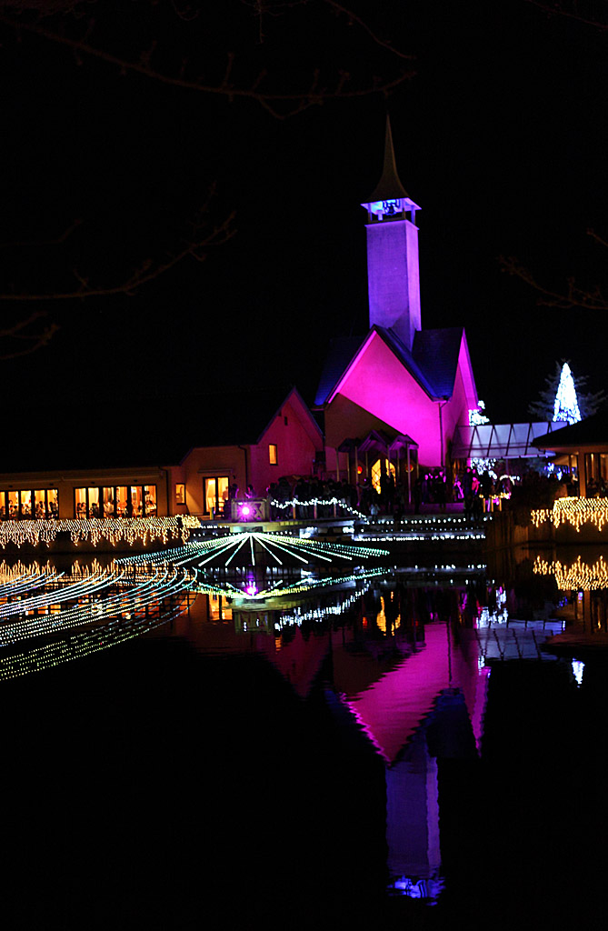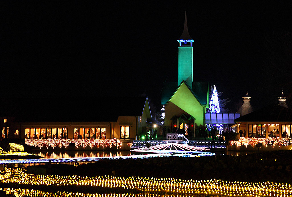 チャペル イルミネーション「ウィンターイルミネーション 冬華の競演(とうかのきょうえん)」は冬季に行われるLEDを使用したイルミネーションイベント。夕方になると多くの客で会場はごった返す。
