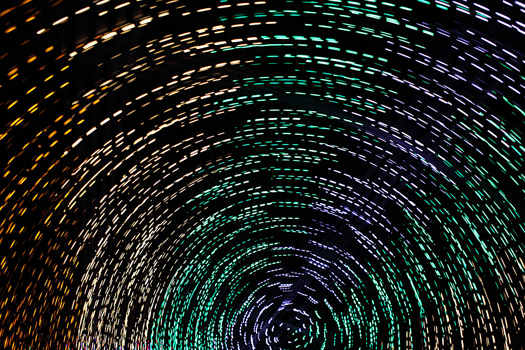 虹色の回廊の部分ですが、シャッターを押す瞬間にカメラをねじりこむとこのような写真が完成します。