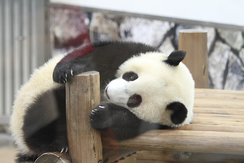 生まれて半年の赤ちゃんパンダです。文句なしにかわいいですよね。ただ、見学までおよそ1時間の待ち時間ありましたので、遠方からの長距離撮影です。意外と硝子の映りこみはありません。