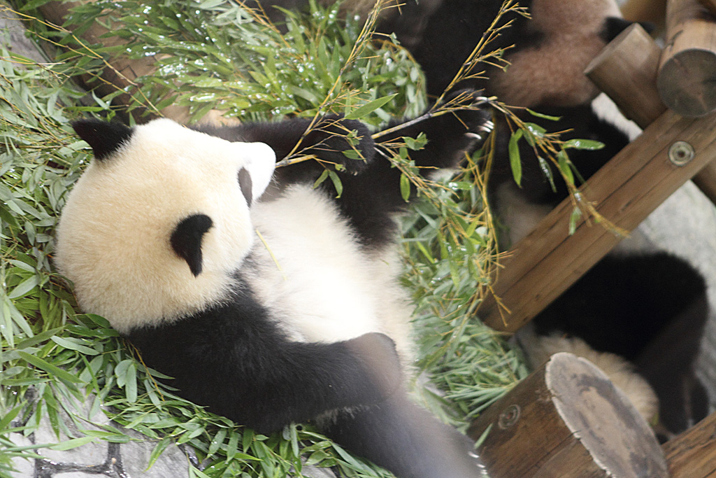 パンダは一回の出産で二頭ずつ子供を産みますが、親パンダが育てるのは発育が良い1頭だけです(野生では)。ですが人間が、赤ちゃんパンダを毎日交互に交換して親パンダに渡すと、1頭づつ育てていくそうです。その間もう一頭は人間が育てるという荒業で、双子のパンダはすくすくと育っていっているそうです。