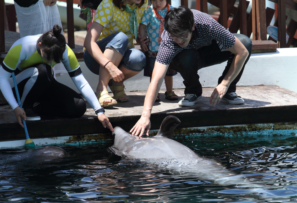子供達には一生の思い出になるでしょうね。イルカと人間がこうしてふれあい互いに生きているということを実感するような一枚です。