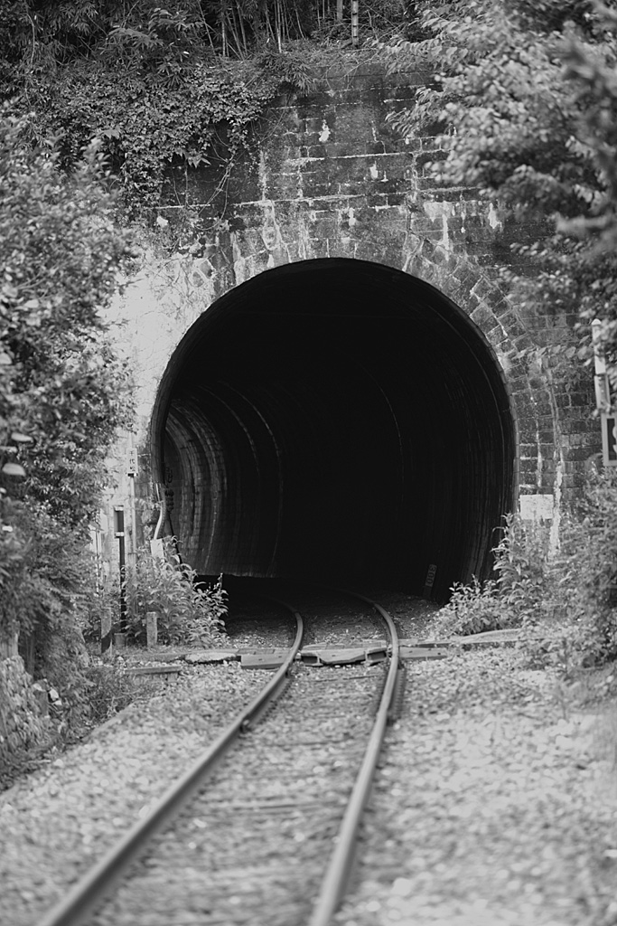 トンネルと線路。でももう、電車は走ってきません。廃線でも勝手に線路を歩いたりするとNGだそうです。
