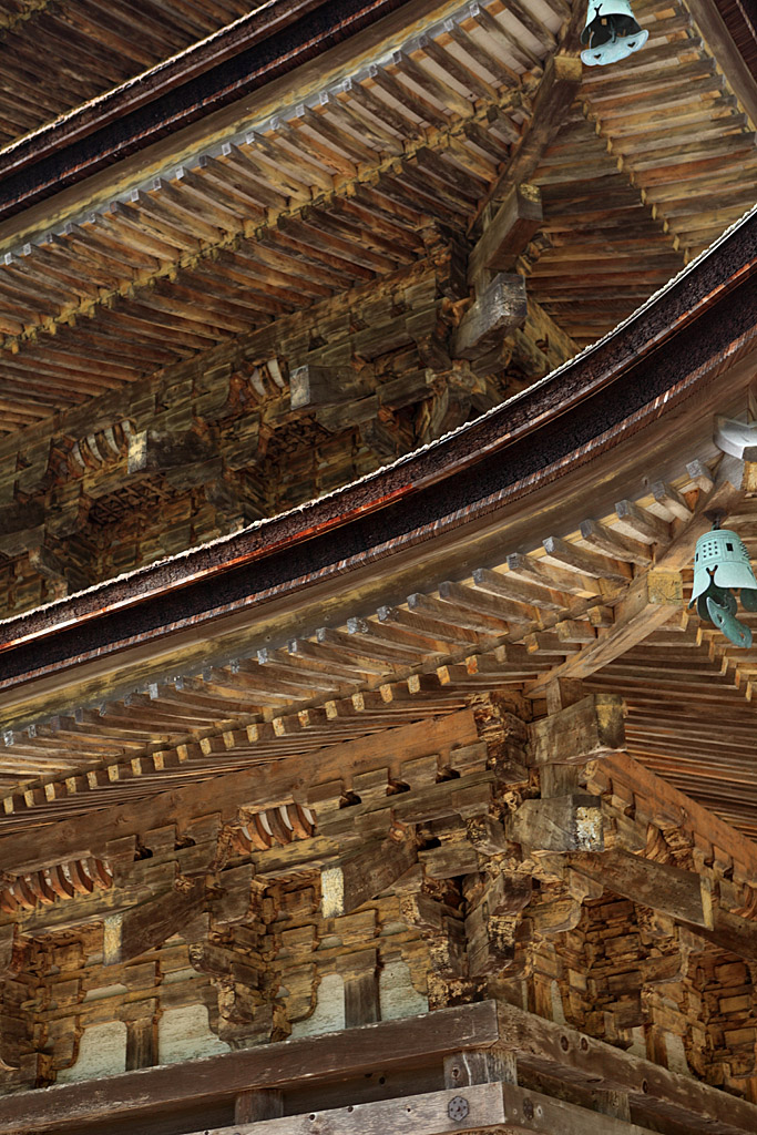 瑠璃光寺を望遠レンズで抜いてみました。一つ一つの組み合わせが合わさり非常に精密にくみ上げています。