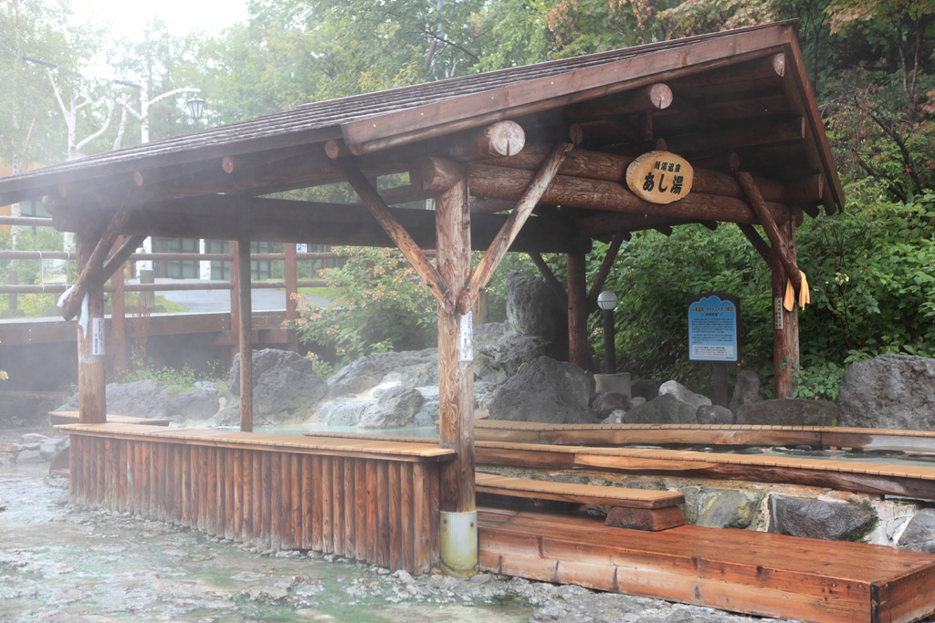 足湯温泉場の全景です。中々雰囲気に調和しており好感が持てます。