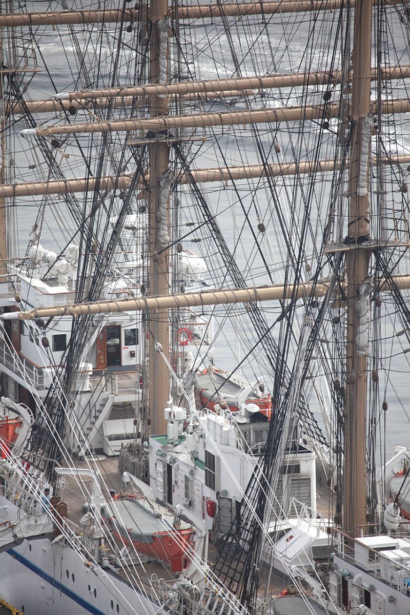 4年ぶりの、日本丸・海王丸同時入港です。まずはポートタワーから望遠レンズで狙ってみました。ガラスに前玉を当てながらの撮影です。
