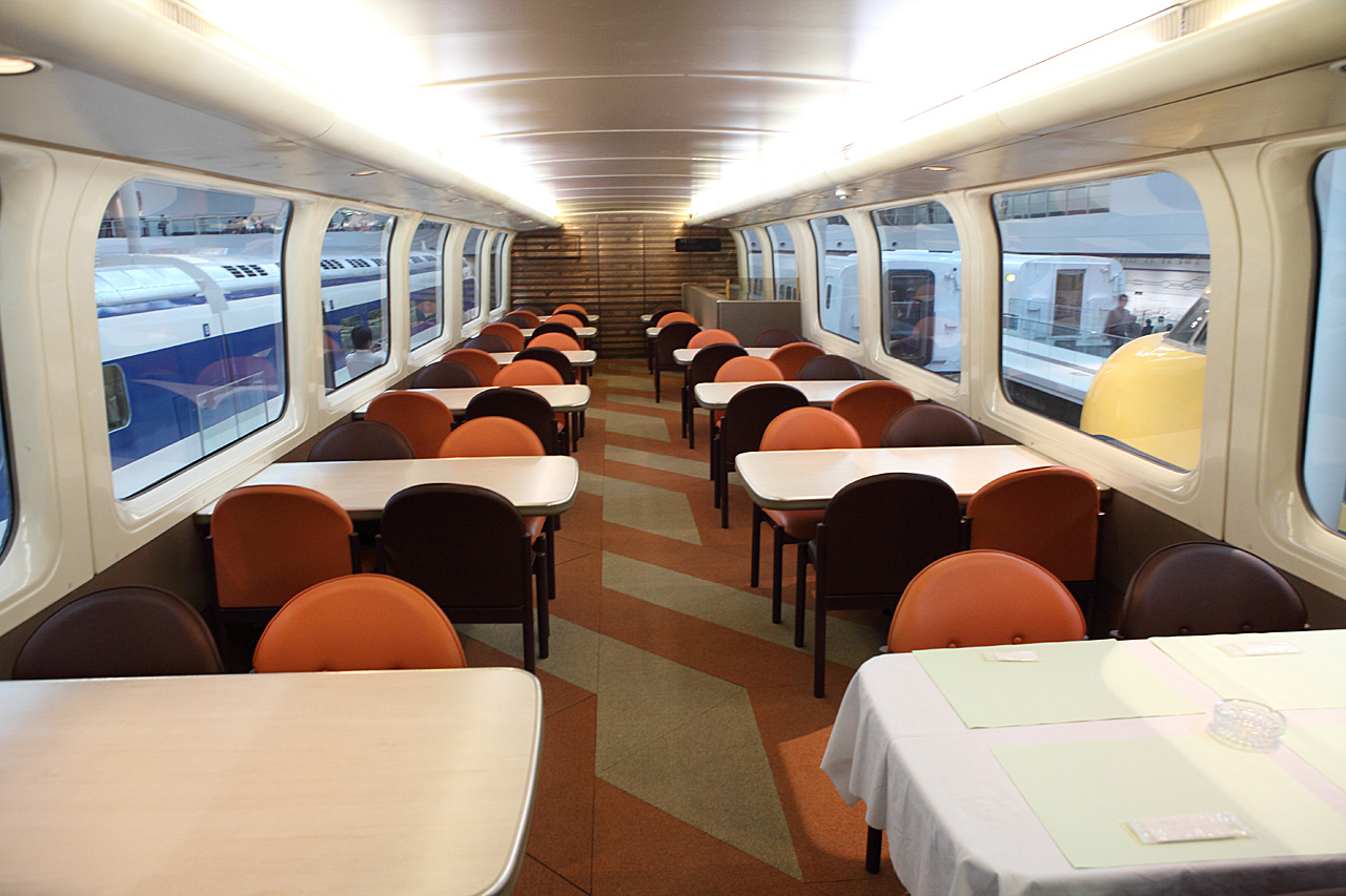 この車両は・・「2階建て新幹線」です。走っていましたね〜。一度も乗車することはありませんでしたが、当時の雰囲気をそのままに、中にはいることができます。食堂車になっていました。