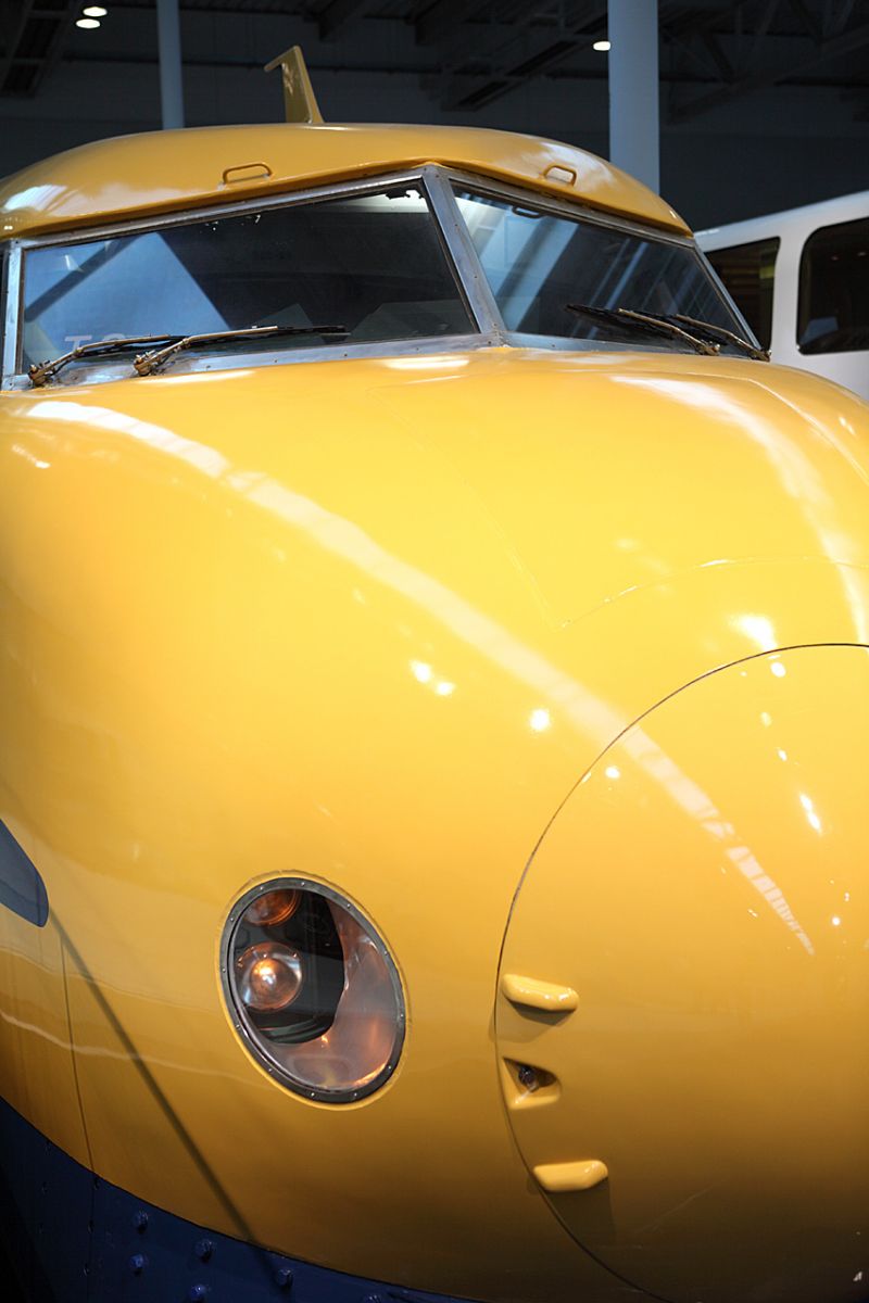 ドクターイエロー。たまに走っているのを見かけますが、基本運行時間内では見ることができません。線路の状態などをチェックする車両です。中にも入ることができます。