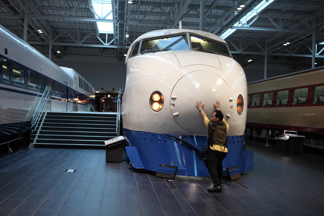 新幹線N700系のモックアップを使用した運転シミュレータ。東海道新幹線東京 → 名古屋間のダイジェスト路線を運転する。
