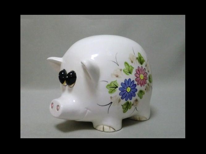 北欧スウェーデンの品かと思いますが? 陶製 ハンドペイント花柄 ビッグサイズのブタ貯金箱 ※画像にて