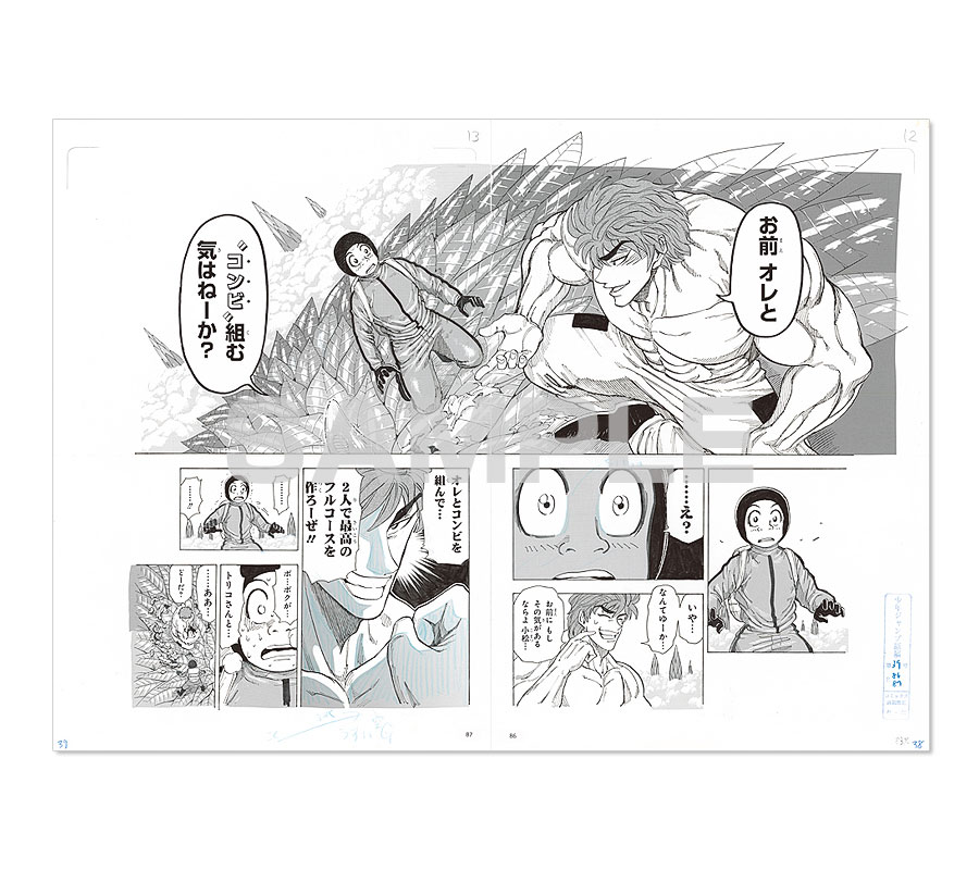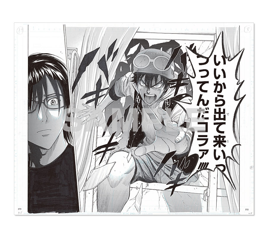 『SKET DANCE』ボッスンが殻に閉じこもるスイッチを連れ出す名場面が複製原稿になって登場!原稿用紙の枠線や下書きまで、原稿のディティールを徹底的に再現!