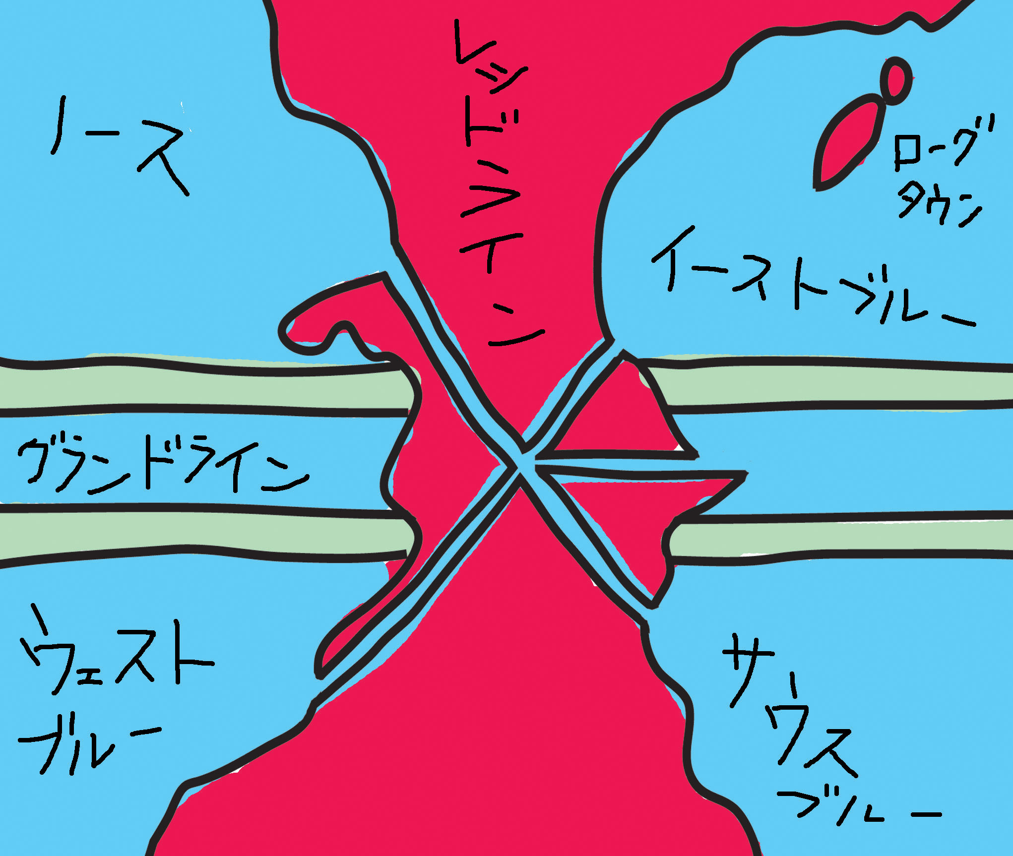 まずこの惑星の中心をレッドライン(赤土の大陸)がぐるっと一周しています