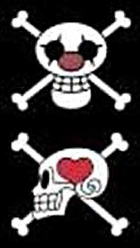 海賊旗は目がハート型の横向きドクロで「Miss ラブ・ダック号」という名前の船に乗る