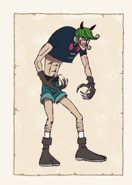 ブチはパワーやジャンプ力を生かした戦いを得意とする武闘家