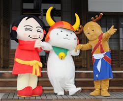 市民グループなどが独自に決めた「まんとくん」「なーむくん」の3キャラが