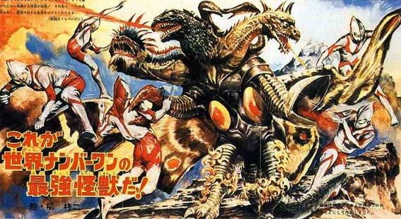 怪獣酋長ジェロニモン(60匹の手下怪獣を持つという)、ゴジラ、キングギドラの首をもち、