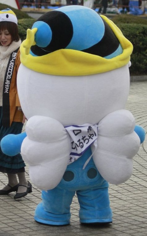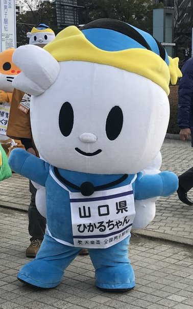 | 光市市制100周年を迎えた2014年に進化して誕生。 体はおだやかな瀬戸内海のブルー。ハネた前髪は虹ヶ浜と室積海岸に打ち寄せる波。帽子の黄色い星は「ニジガハマギク」をイメージしている。 光市を中心に活動している。 |