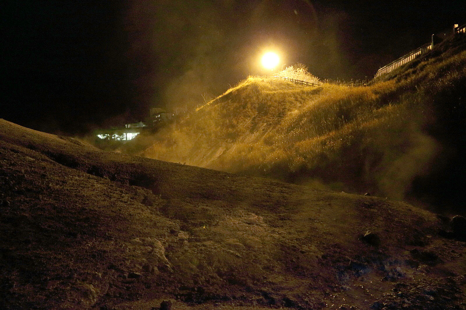 登別温泉地獄谷 夜間ライトアップ時にて撮影(ナイトツアー参加)