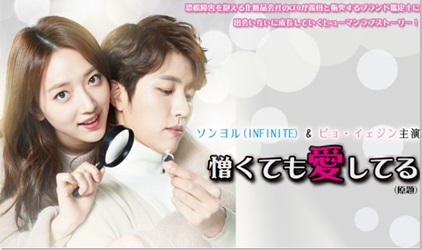 ジーニアス グループの代表 ソクピョ(ソンヨル<INFINITE>)は横領罪で執行猶予を言い渡される憎くても愛してる あらすじ。むしゃくしゃしていたソクピョはクラブに行くが、パニック障害でパニックを起こしてしまう。そこへ、義母ヘンジャ(ソン・オクスク)から逃げていたウンジョ(ピョ・イェジン)がやってきて介抱したことから2人は運命的な出会いを果たすのだが。