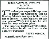 当時長崎で発行された英字新聞で6月22日付の広告紙面に、社交サロン店主であるヘンリーギブソンが新装開店を告知した記録が残っており、