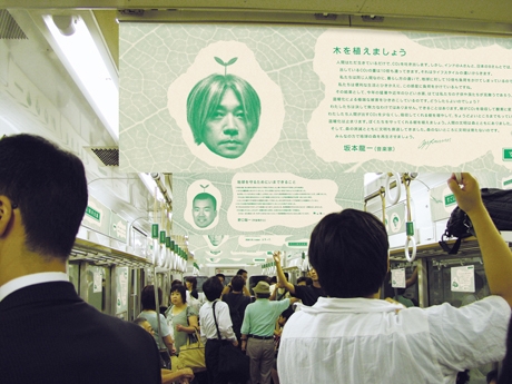 電車の車内を会議室に見立て、中刷り「すごいパネリスト」がエコなコメントを発表。それを乗客が見て、「すごい市民パネリスト」として、メールやサイトを通じてエコなコメントを発信し、それを電車内に再度掲載することで意見交換を行うという企画で、今年で2回目です。