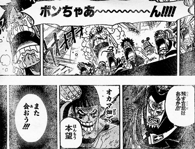 インペルダウンを出る前に 正義の門は自分が開けるとボンちゃんが自ら申し出て、通信が切れるまで黙っといてとジンベエに伝えていたのです!なんて・・・なんて格好いい人なんですか!!