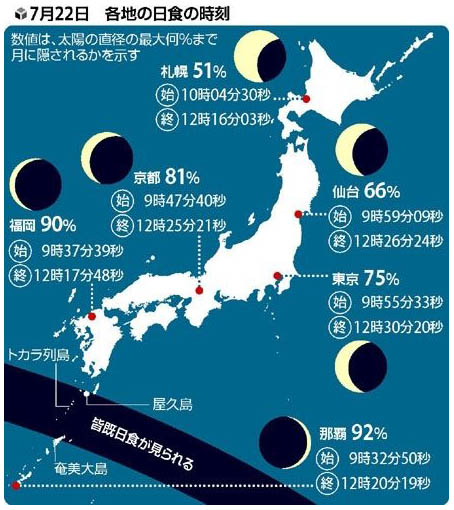 画像で 各地の日食時間と欠ける度合いの表がありましたので掲載しておきます