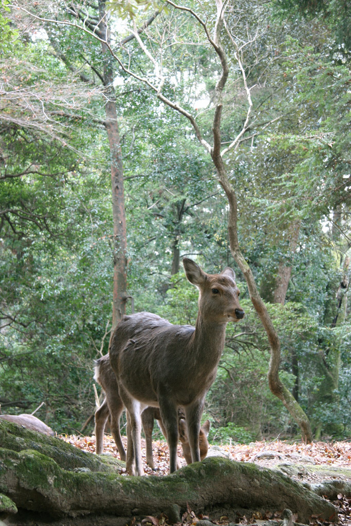 3枚目 今回のお気に入りのショット。神の使いが光りのむこうからやってきました。質感を出そうとしてアーサー100にしたら1/8秒になり、手ぶれギリギリ・・。「カシャ」という音が出た瞬間逃げていったので、この一枚のみ。