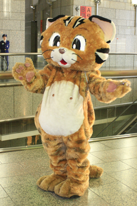| 絶滅危惧種のツシマヤマネコ保護の啓発活動を目的に2002年に作成されたキャラクター。 「ろくべえ」の名前は対馬の郷土料理でサツマイモのでんぷん由来の麺料理「ろくべえ」が由来。 翌2003年には妹の「つばき」ちゃんも誕生。つばきちゃんは「ゆるキャラ大図鑑」にも収録。 紹介ページにろくべえ君も載っていますが、「クロベエ」と誤植されていますので注意して下さい。 ツシマヤマネコ保護キャンペーンなどで東京にもやってくる事があります。 |
