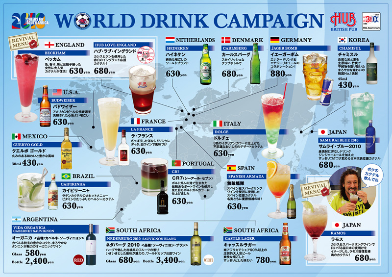 5月23日(日)から7月11日(日)まで 「World Drink Campaign」というキャンペーンをしています。