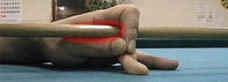 下の写真は真横から撮影したものですが、キューと指の触れている部分を赤く着色してみました。この部分が少ないと一箇所に大きな力が加わるのでキューは滑り難くなります。触れる面積を大きくすることで小さな力の集合がしっかりとしたレストとスムーズに振れるレストの矛盾を解決してくれます。