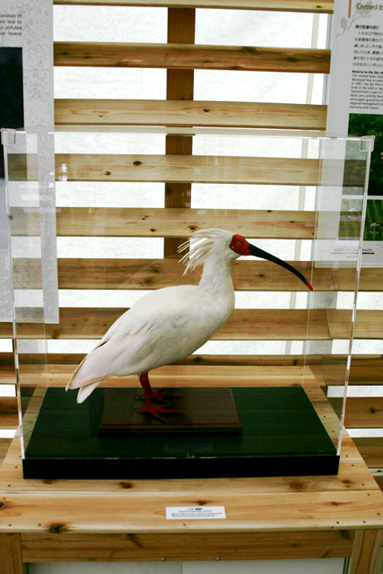 【画像左】トキの剥製:間近で見ることができます。