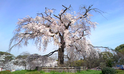 京都の丸山公園にある「祇園枝垂桜」。京都屈指の名勝です。