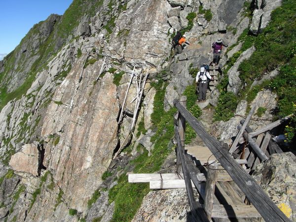 中央:地盤がもろく、登山道が崩壊しており、迂回ルートでいきます。