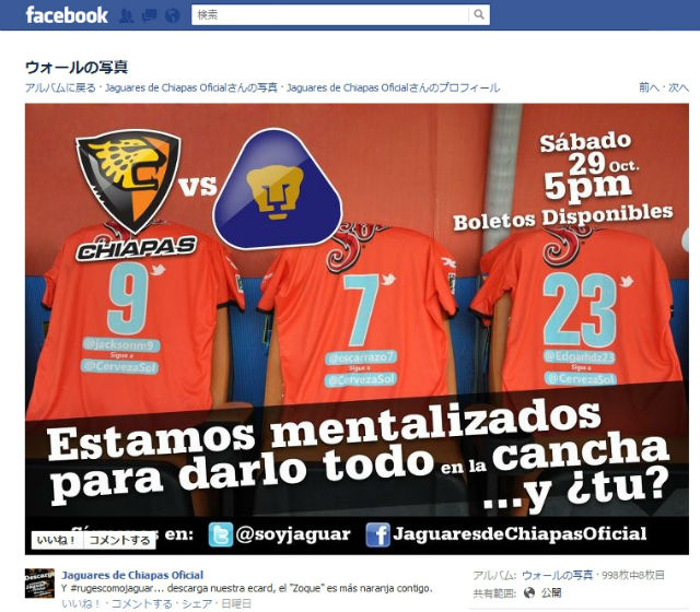 このチームの名前はJaguares de Chiapas(ハグアレス・デ・チアパス)といい