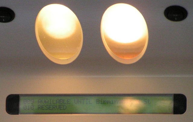 小さな液晶ディスプレイ(写真中)や小さな電光掲示板で表示する会社もあります。