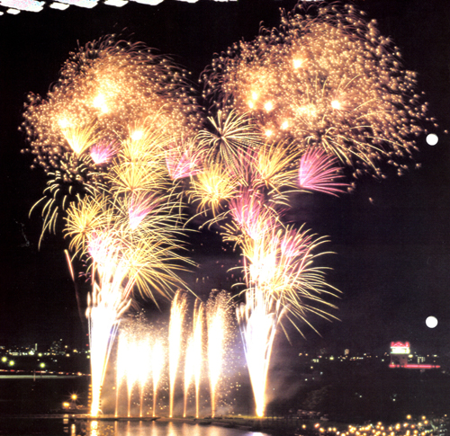 また、豪華な仕掛け花火、金魚花火、大筒などに加えて、水中花火、