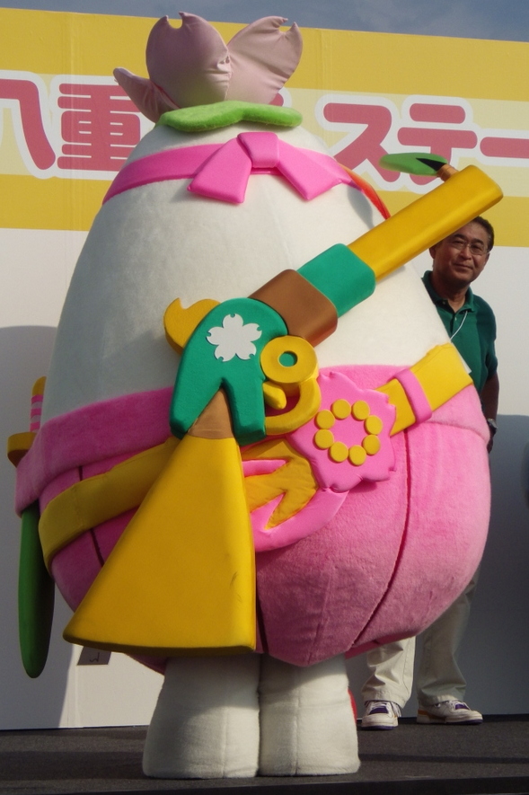 | 2013年2月、大河ドラマ「八重の桜」を応援し、町おこしにつなげるべく誕生。 復興の象徴「起き上がり小法師」をもとに桜の花をあしらっている。 背中に背負っている銃が命中した場所には数日後花が咲くという。街中が花畑の美しい街の誕生を願っている。 |