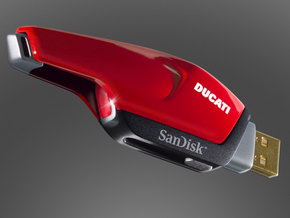 特にUSBフラッシュドライブは、DucatiのモトGPモデル「デスモセディチ」の燃料タンクを思わせる流麗なデザインがカッコイイ。