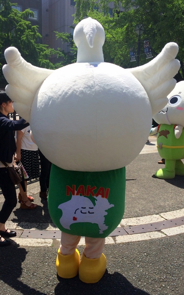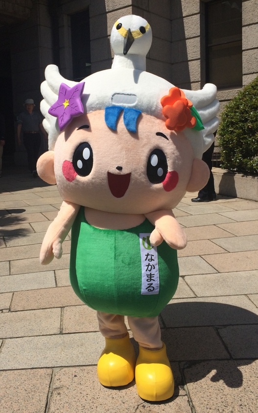 | 2015年4月誕生。中井町マスコットキャラクター。 町の鳥「シラサギ」の被りモノに町の花「キキョウ」、町の木「キンモクセイ」をあしらい、背中に神奈川県域のイラストに中井町の位置と”NAKAI ここ“の文字を入れている。 |